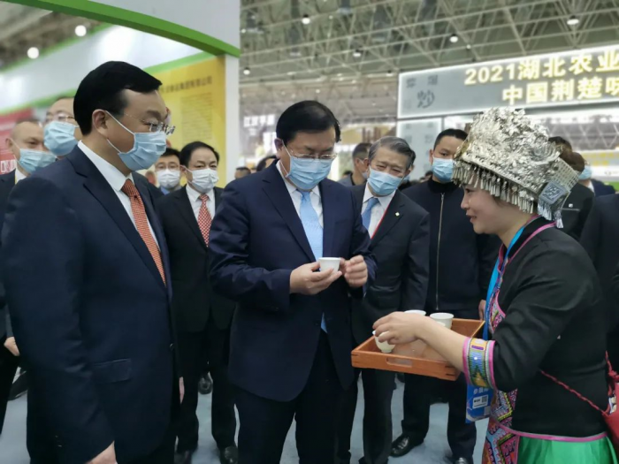 王忠林省长在省农业农村厅厅长吴祖云、楚商联合会会长陈东升的陪同下来到湖北省茶产业链展馆,品尝了乐竞官网-乐竞(中国)一站式体育服务恩施玉露。